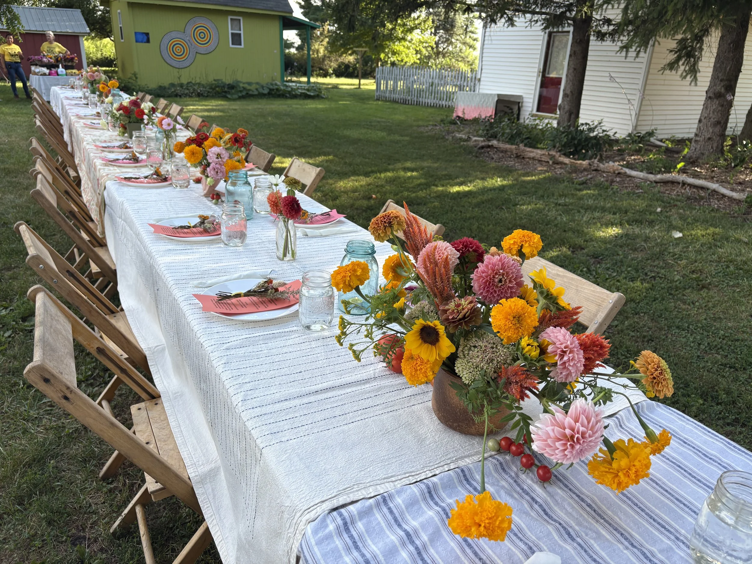 Imbibe on special beverages as you walk through fields of blooms, admiring your favorites. Make conversation with new friends as you share a communal table. Listen to the distant chirping of crickets and birds, the clinking of dishes being shared, and the wind rustling through the trees. These moments are meant to be savored, not only the food. Here time slows down.