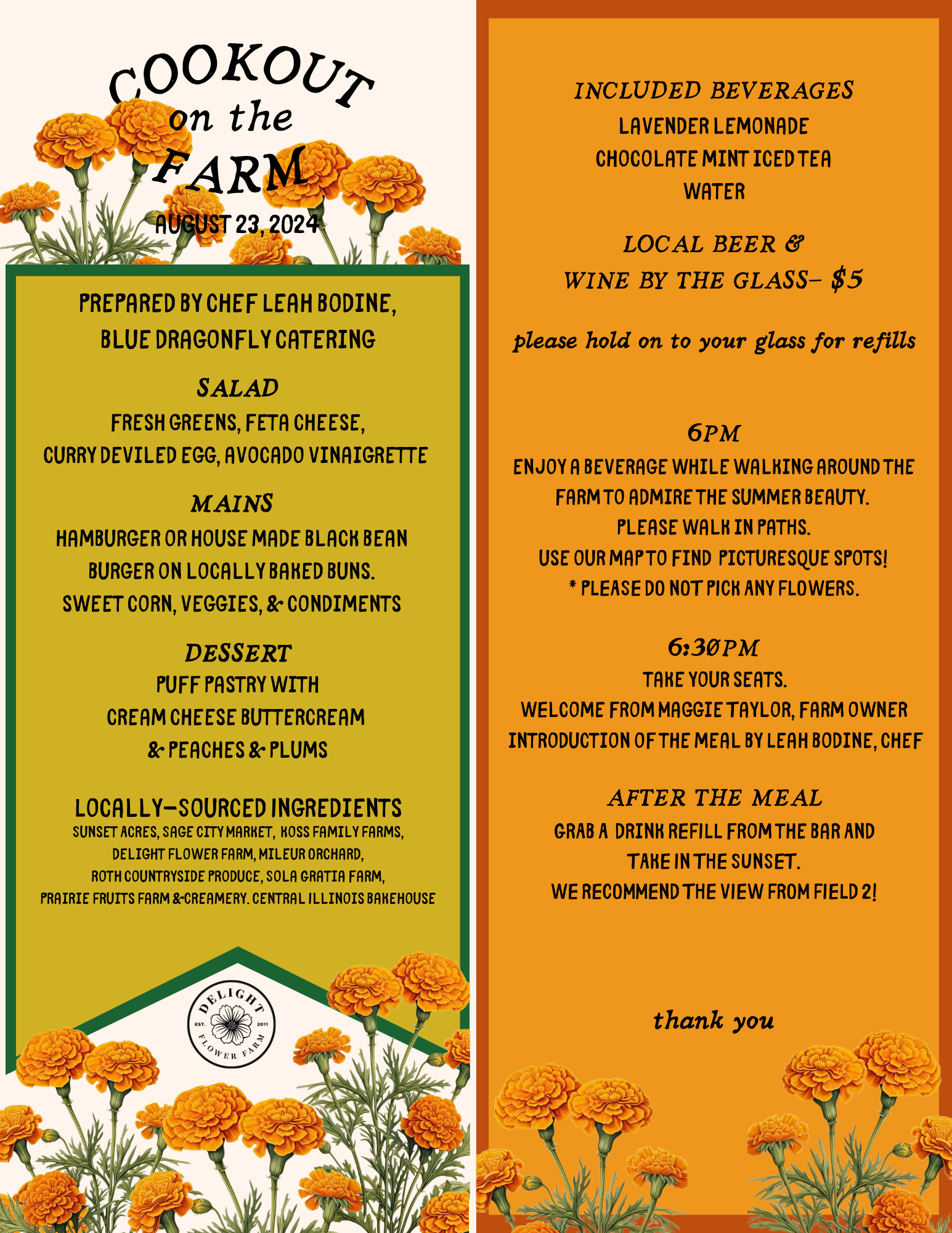 The Delightful Dinner Series showcases the diversity of the surrounding region, featuring menus crafted entirely from locally sourced ingredients. Partnering with local chef Leah Bodine of Blue Dragonfly Catering, we provide memorable dining experiences with an unbeatable atmosphere–-our very own farm.