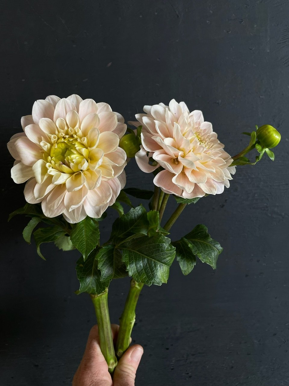Charming and sweet blooms with pale pink petals and a pastel yellow center. These blooms are a bit bigger (~5 inches) than most standard ball varieties. These blush beauties are so romantic!
